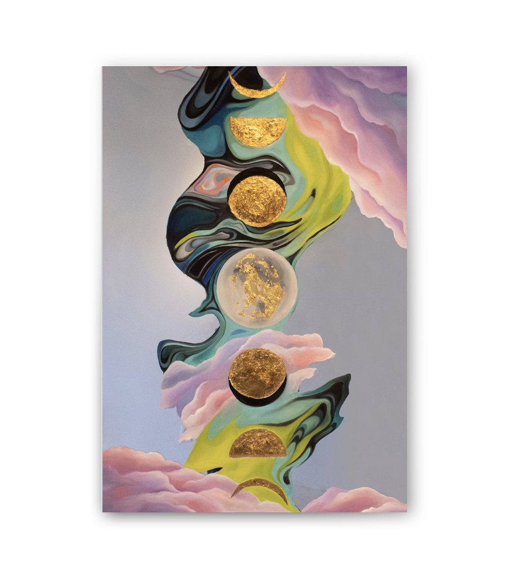 Her works feature a distinct style of figurativism, surrealism, and abstraction. Her current body of work explores emotional narratives with intimate portraits as well as expressing ethereal characteristics of the natural world and spiritual energy.